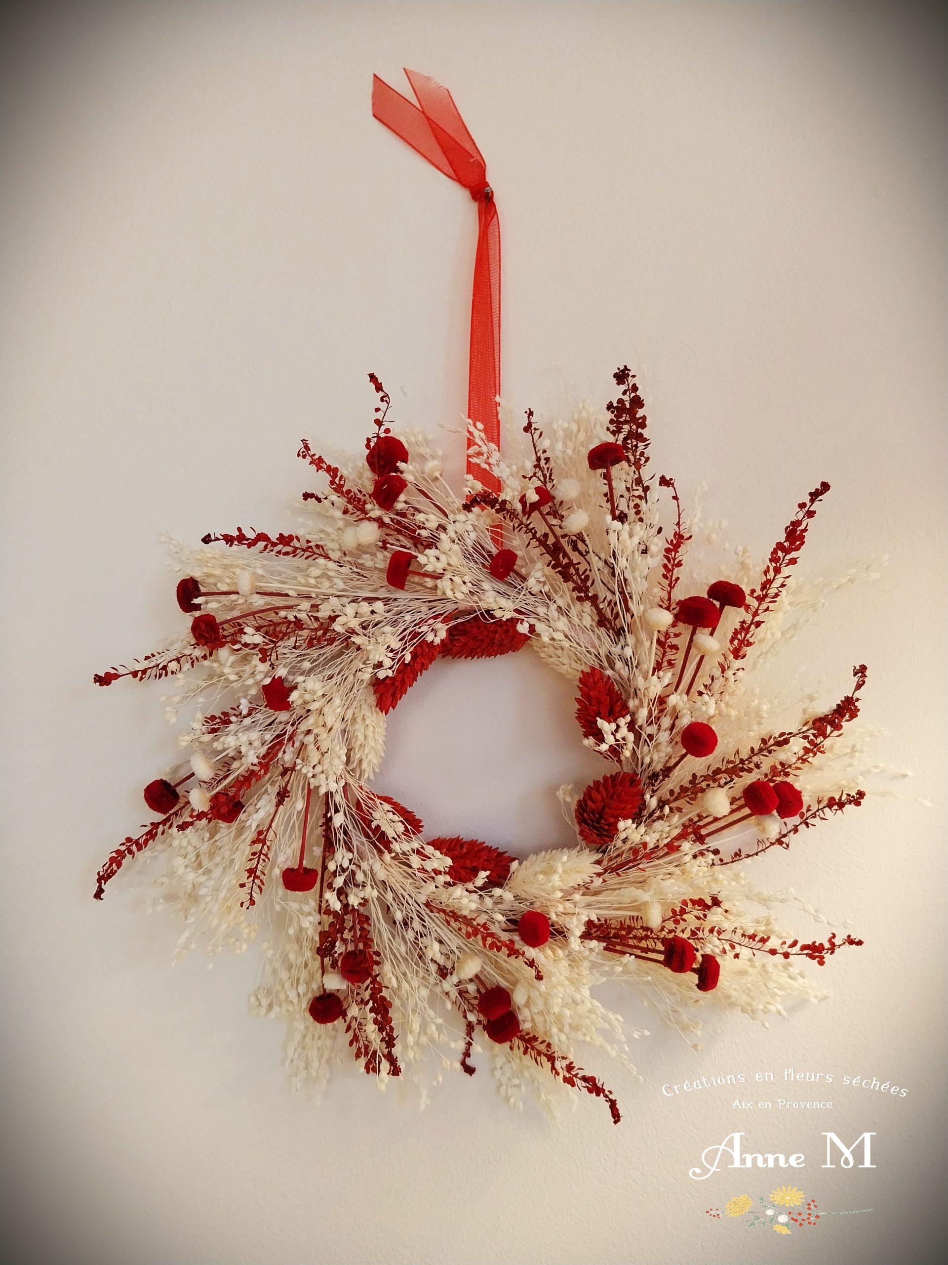 Couronne de fleurs séchées Amarelino aux couleurs pétillantes et lumineuses, composée de végétaux secs et stabilisés.